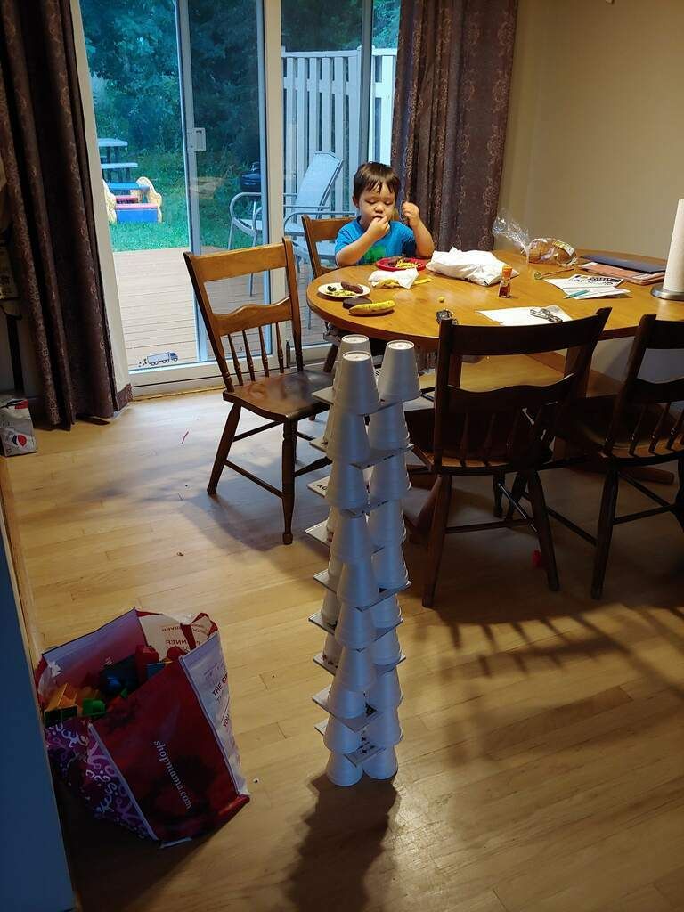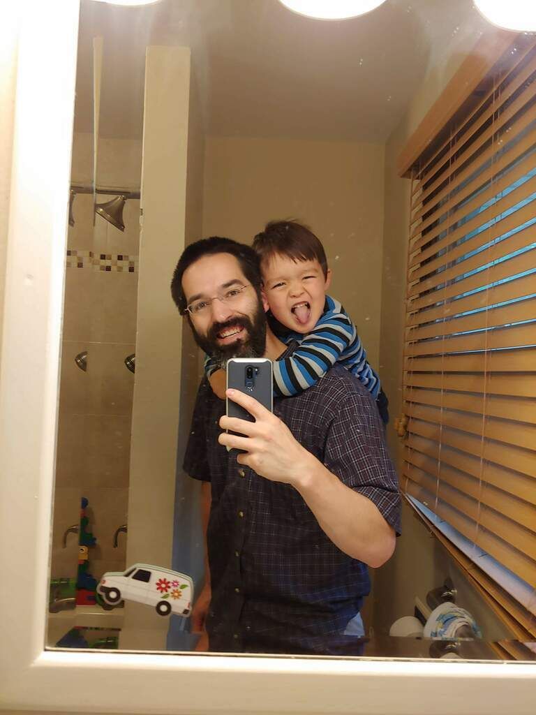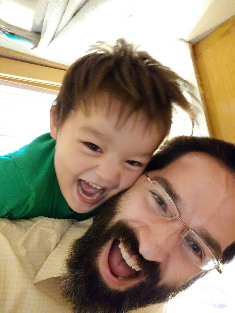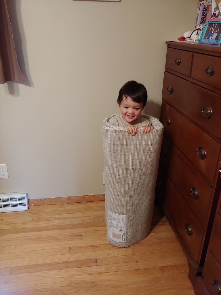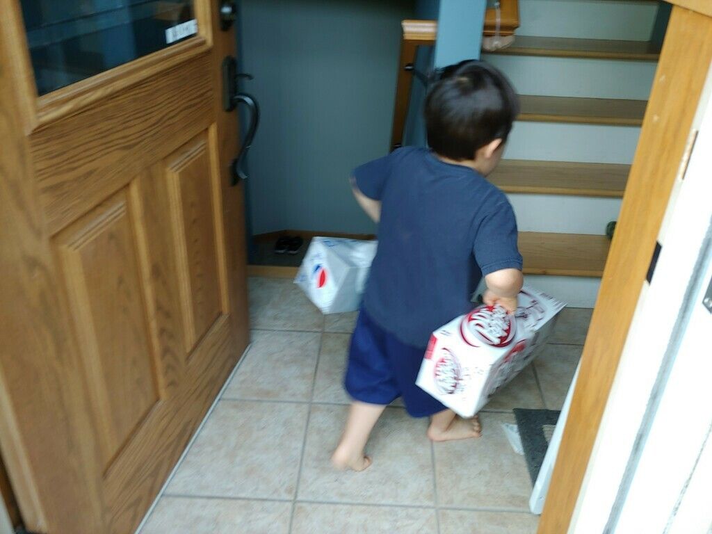 He answered the door telling me I won't get any dinner because my tummy is too big. Then he tried to one up said tummy. I love this kid.