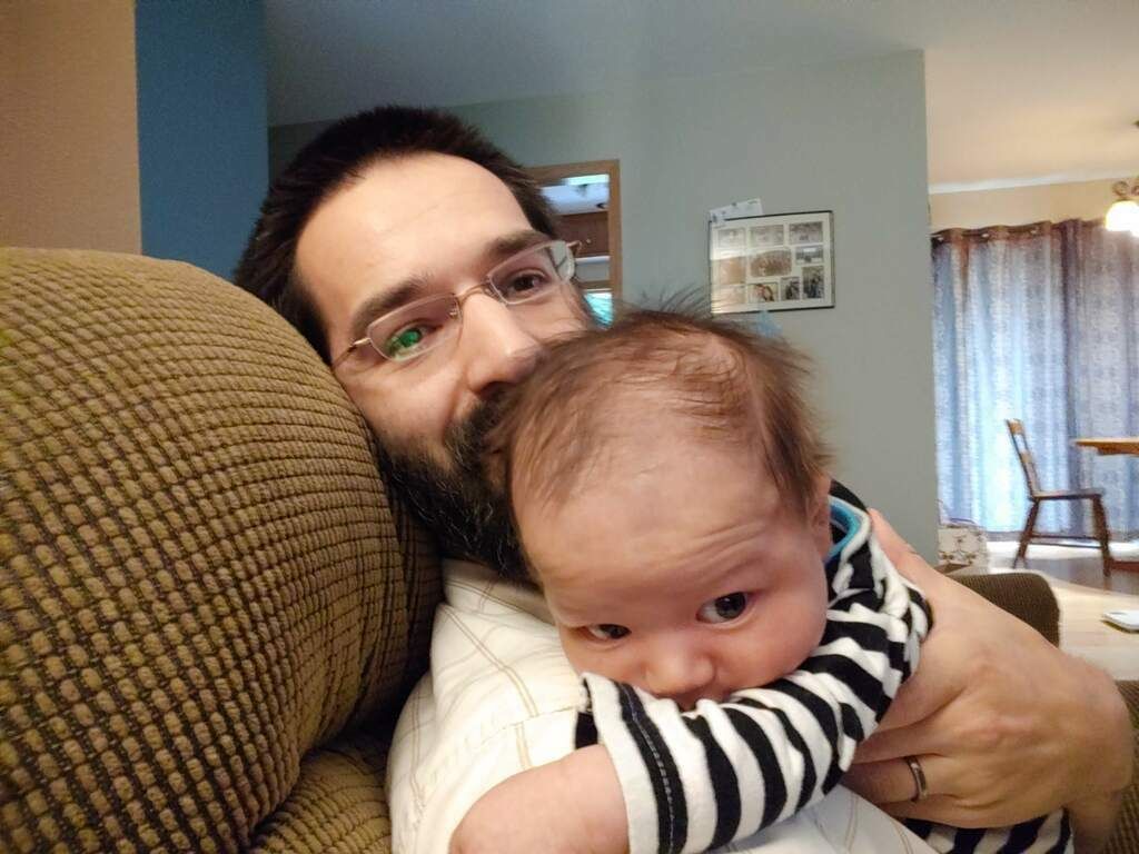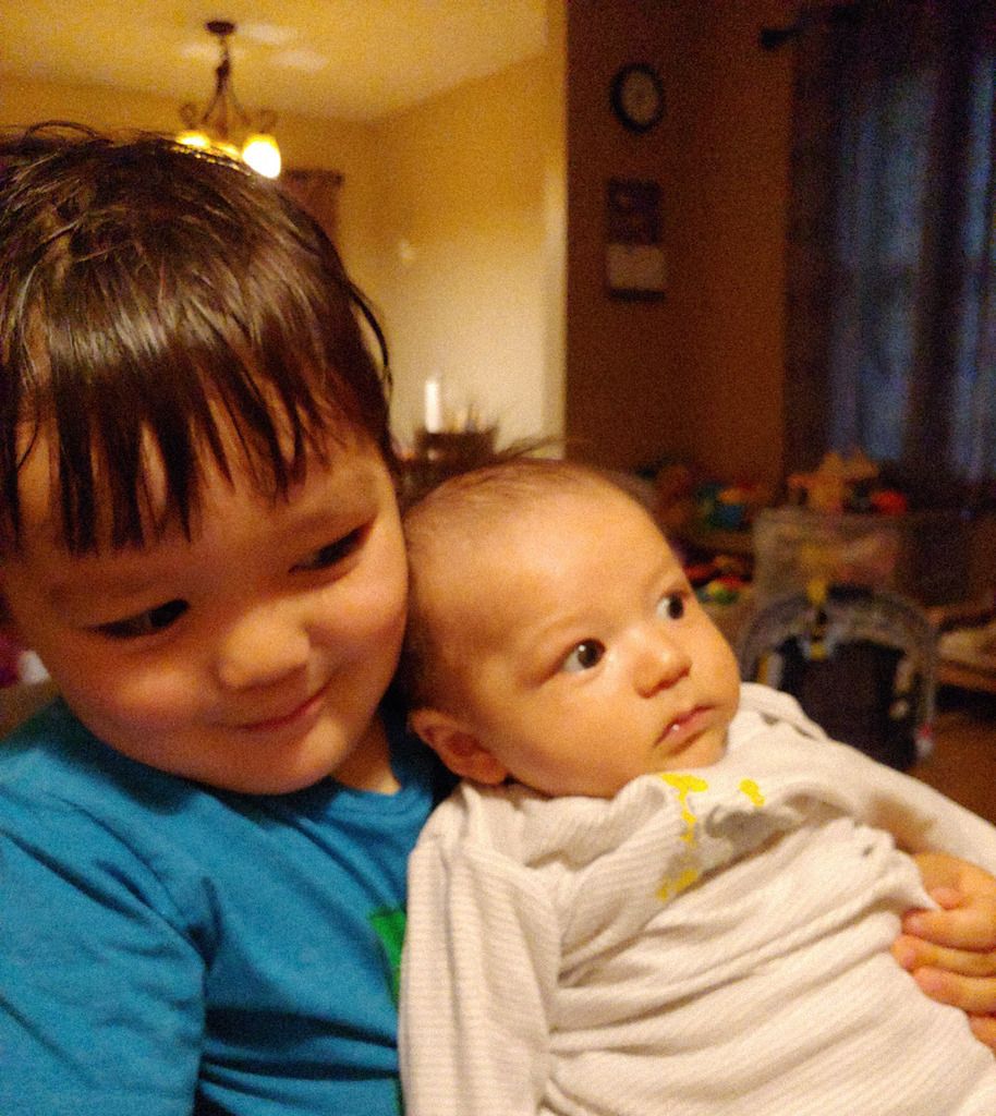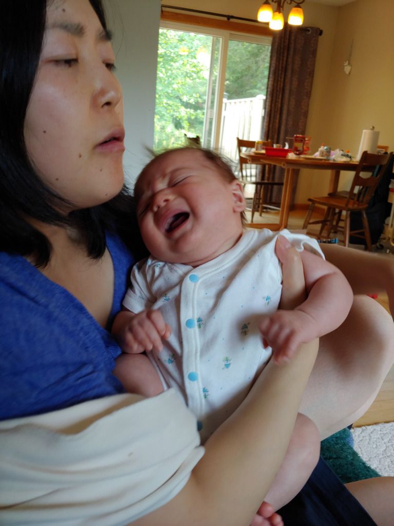 Masami was gone for an hour, he cried two minutes after she left, and didn't stop until the garage door opened again.