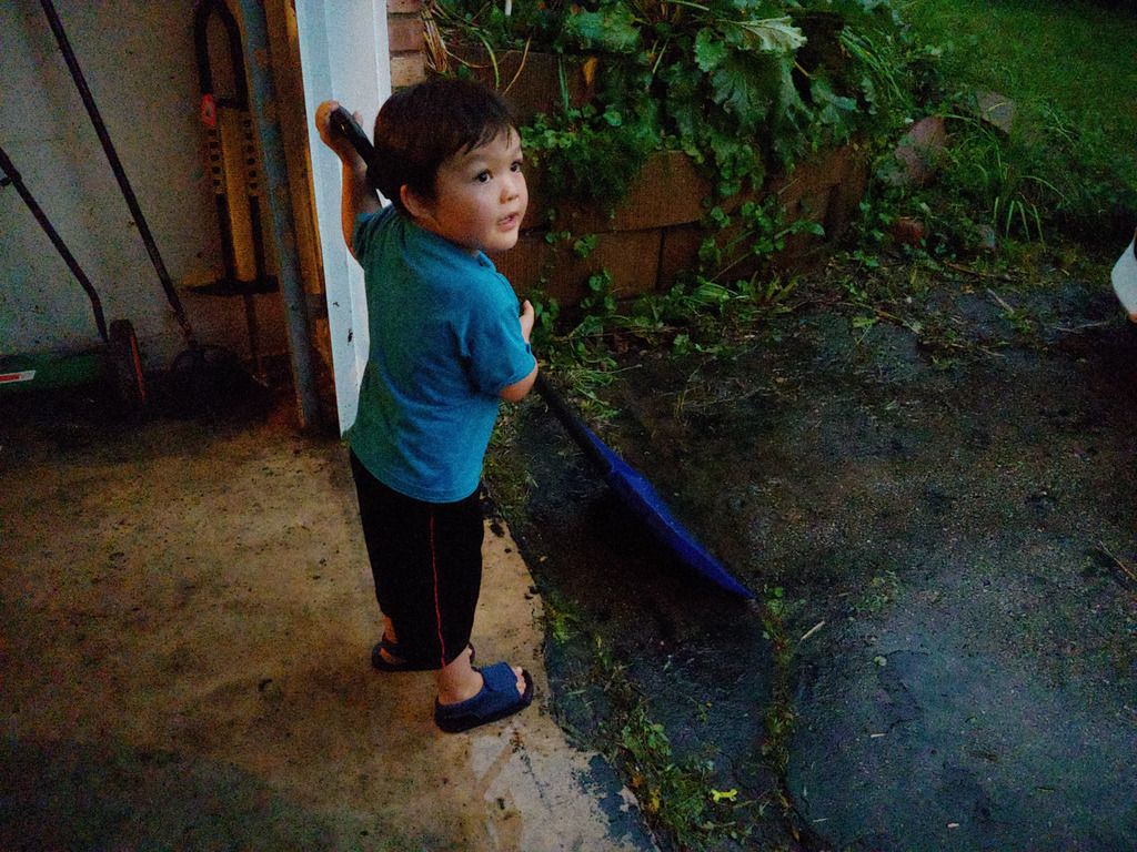 A brief but fairly intense rain came in. Sasuke and I watched from the garage.