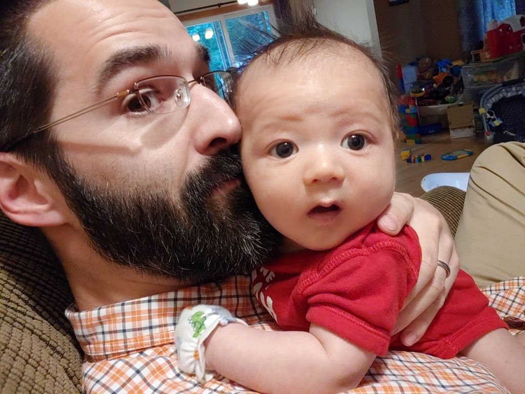 Ken got his first big round of shots at his two month check-up. Poor guy is presumably all achy, and quite openly grumpy.