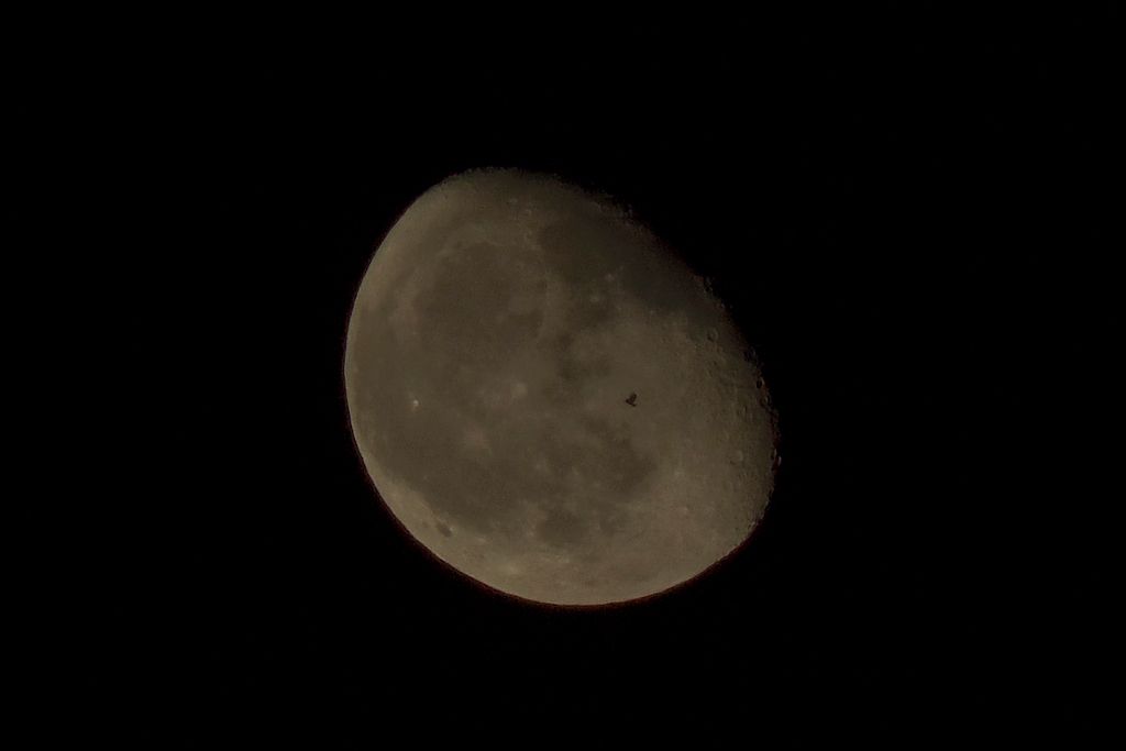 I caught something passing in front of the moon. I don't know if it's a bird or a bug or a satellite, but it's not in any of the other photos.
