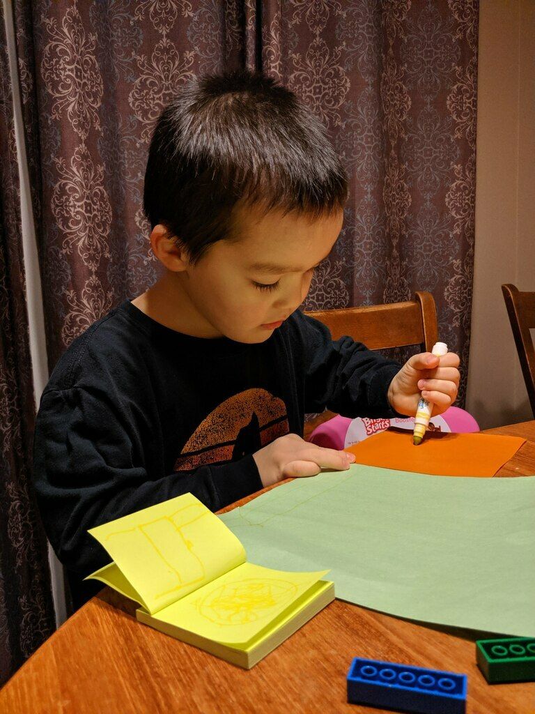 His giraffe was too tall for a post-it note, so he added a couple extensions.