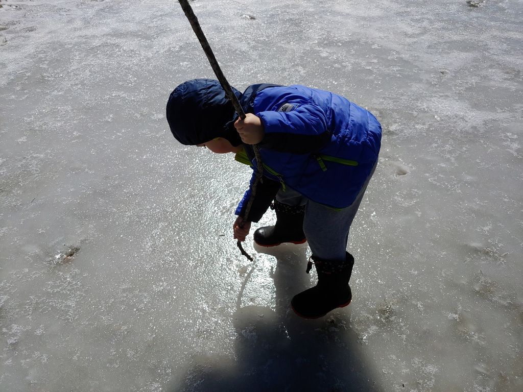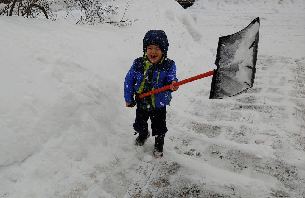Helping me shovel.