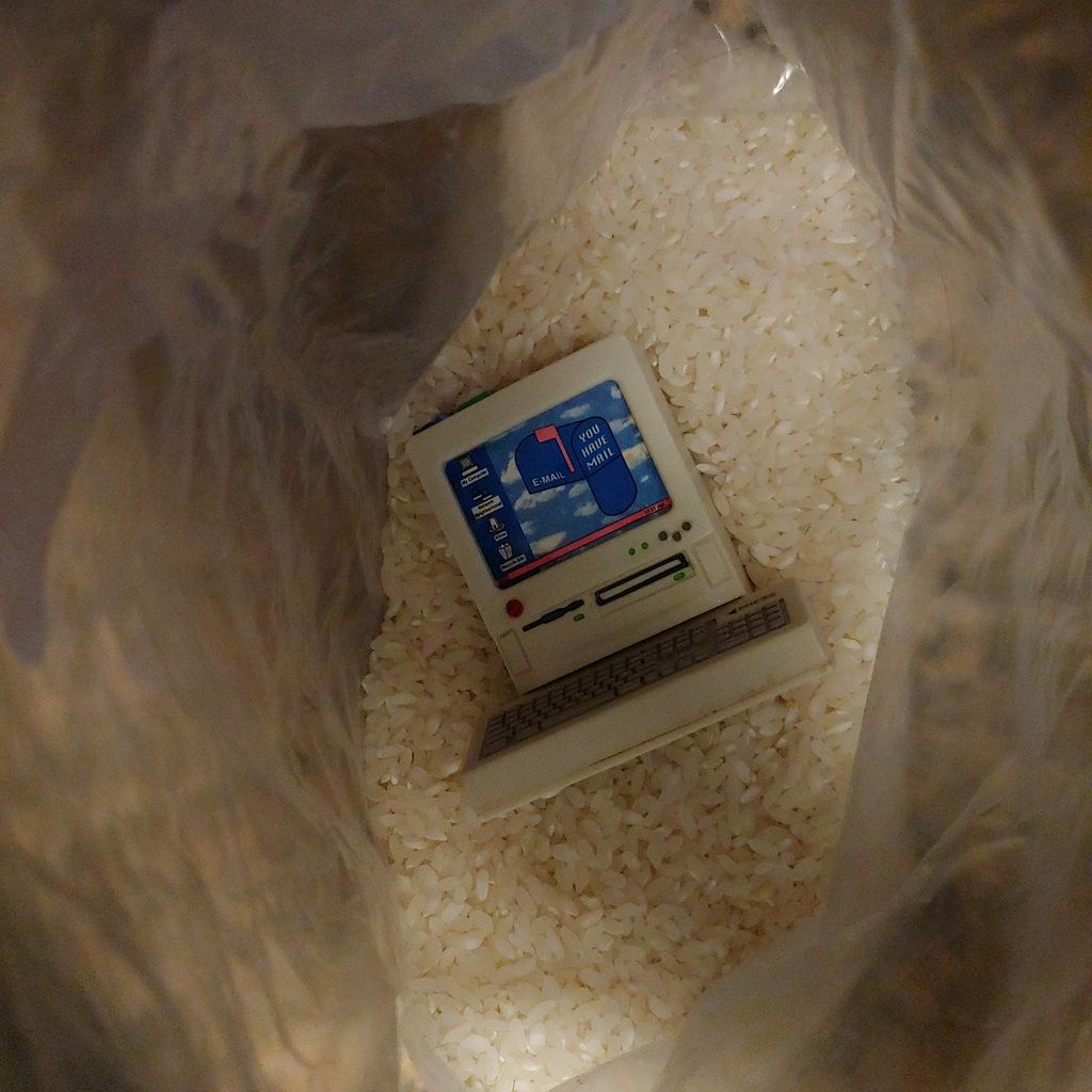 Sasuke dropped the computer in the bathtub, so we put it in rice.