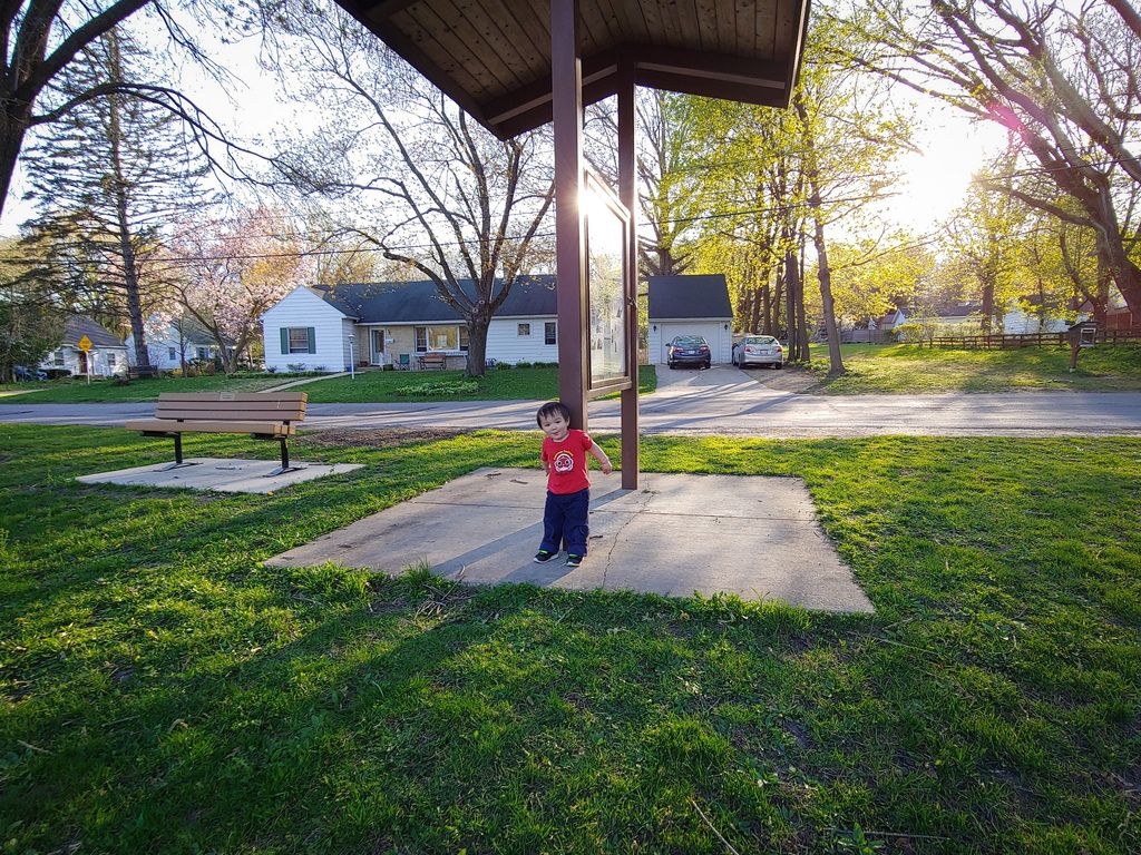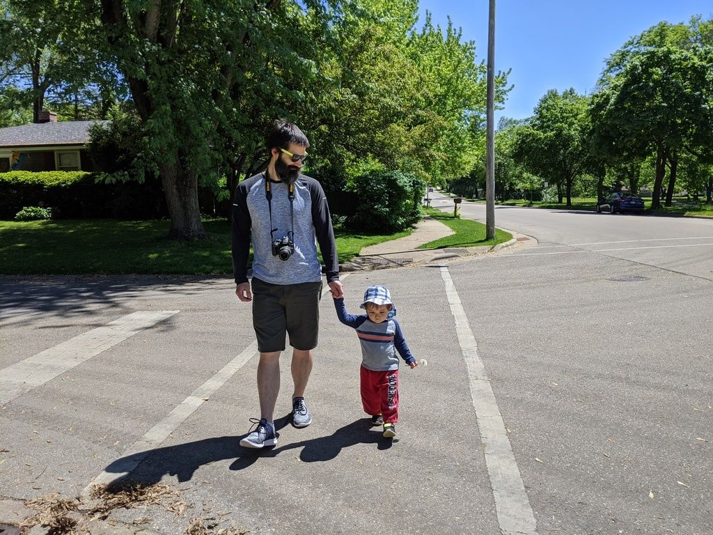 He spots Mama on the way home.