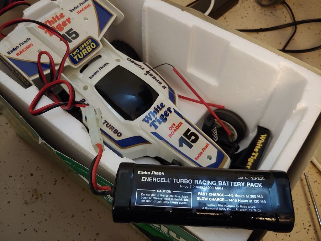 I bought a new battery pack for the White Tiger Turbo Buggy, along with rechargeable 9V batteries. It's fantastic, we drove for over half an hour, vs the 5 minutes the old pack could still muster.
