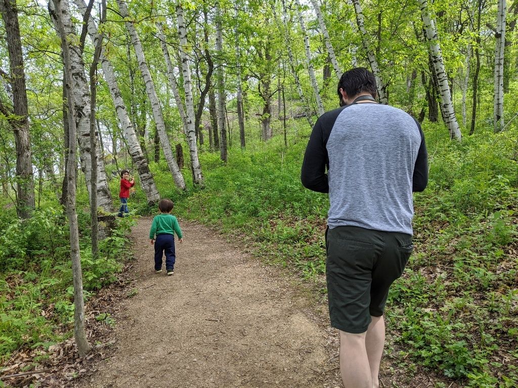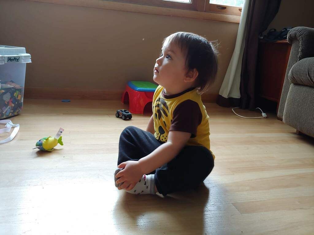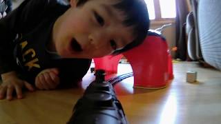 The boys playing with a train.