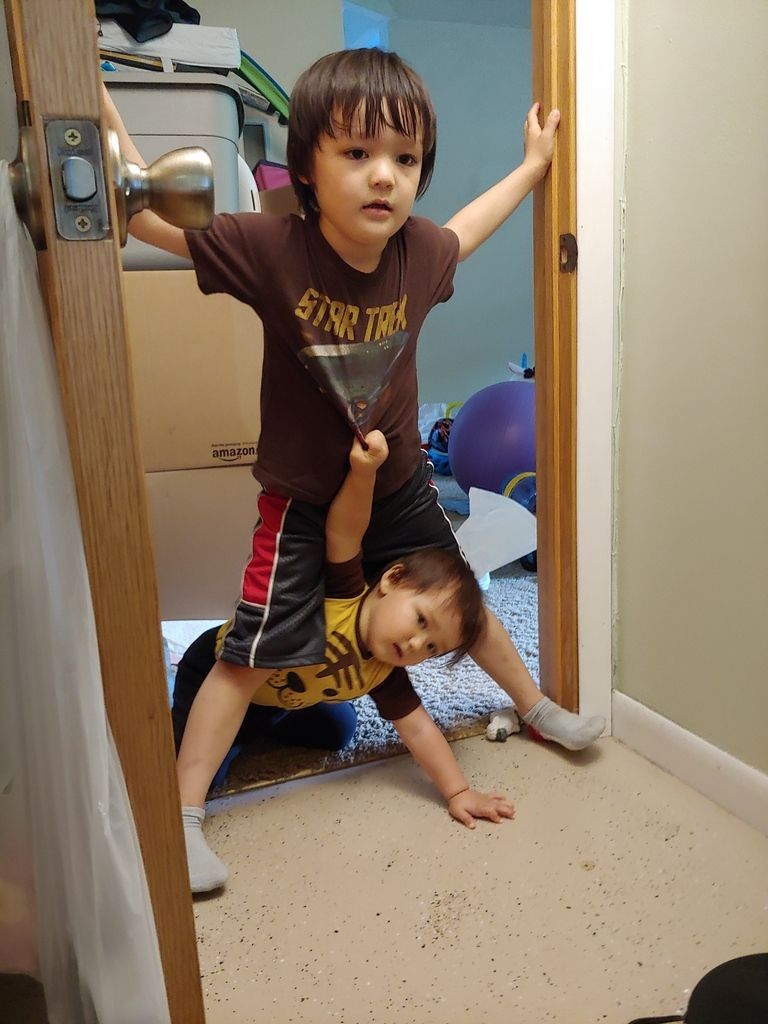 When a certain someone bangs around in his room when he's supposed to be sleeping, we take a run around the block. It works wonders.