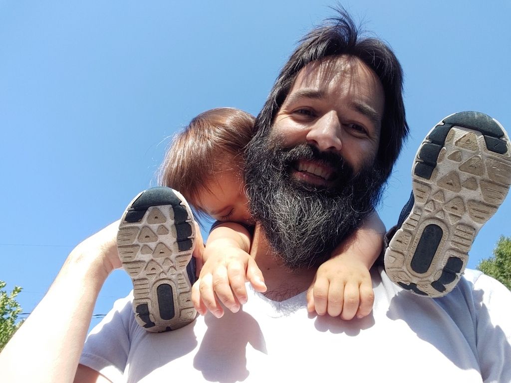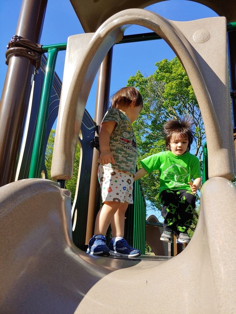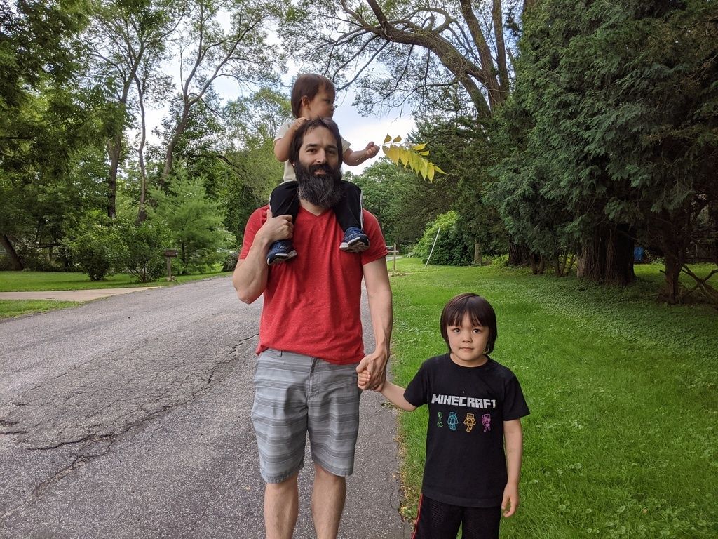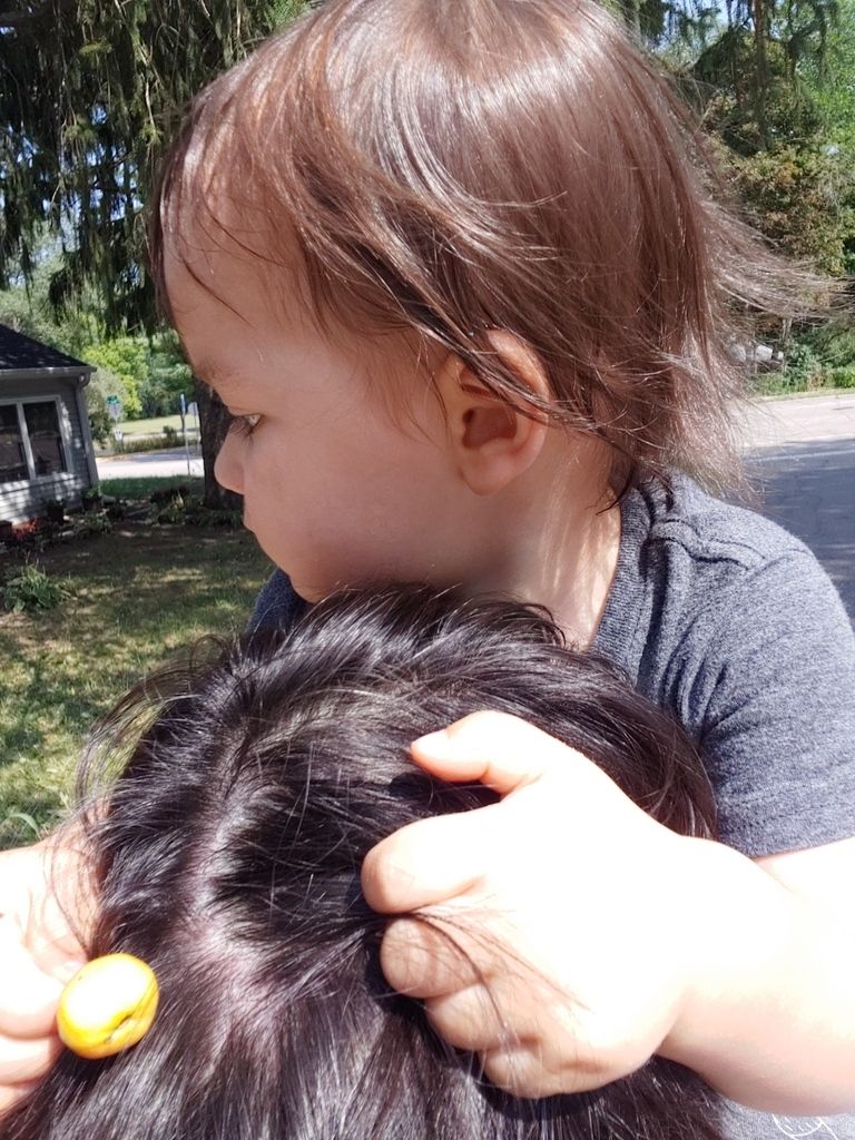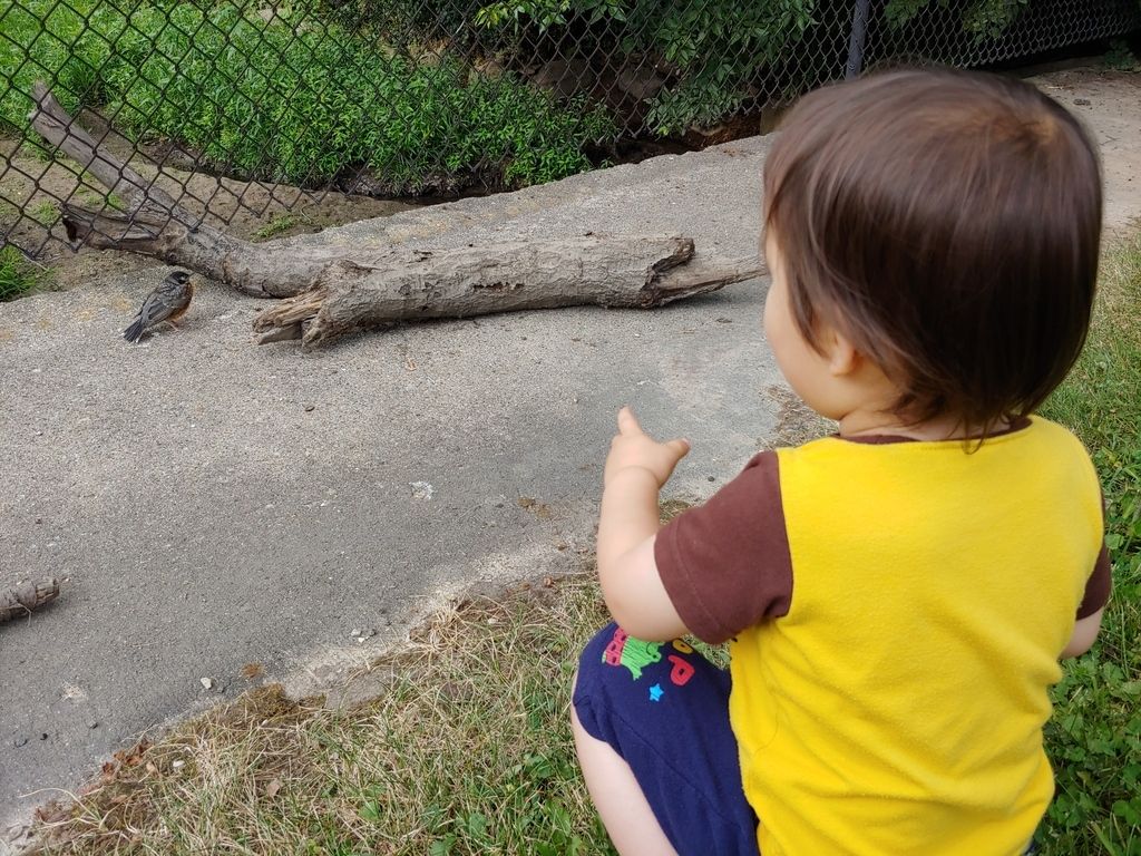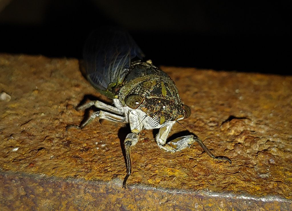 Out for a walk with Kenny he points down and says, "は?" He spotted a resting cicada.