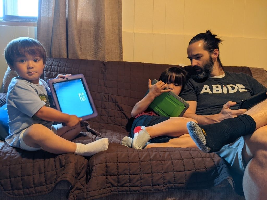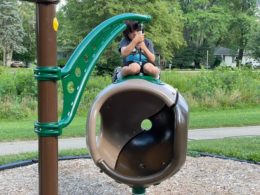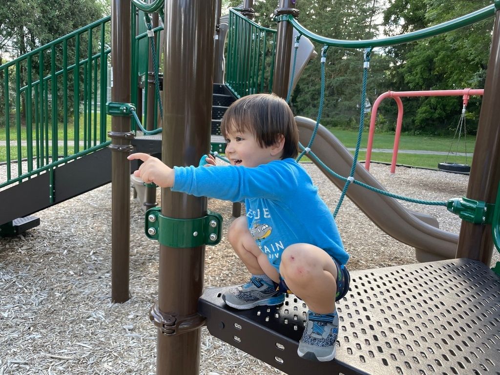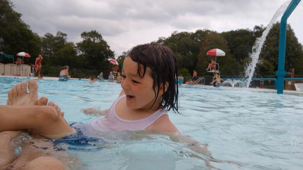 A nice afternoon at the Middleton pool. He went down the slide about 30 times.