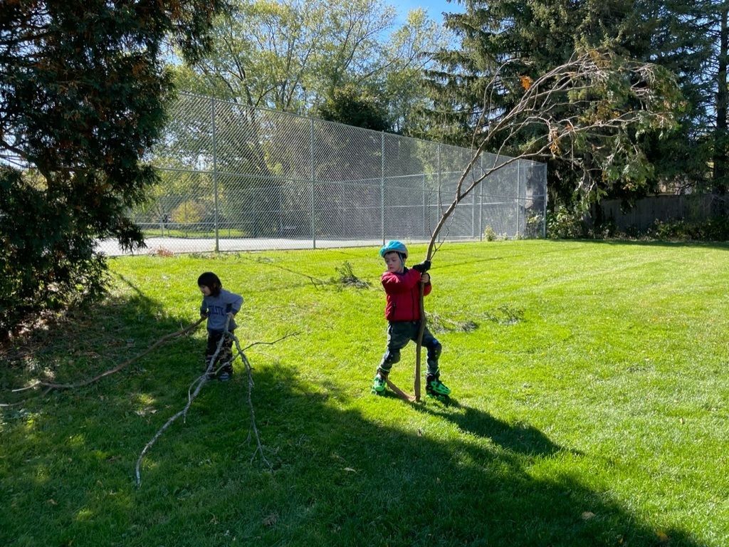 A bunch of branches had fallen, so the boys were trying to plant trees.
