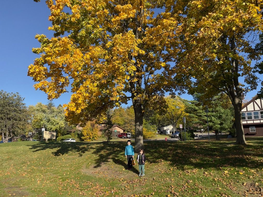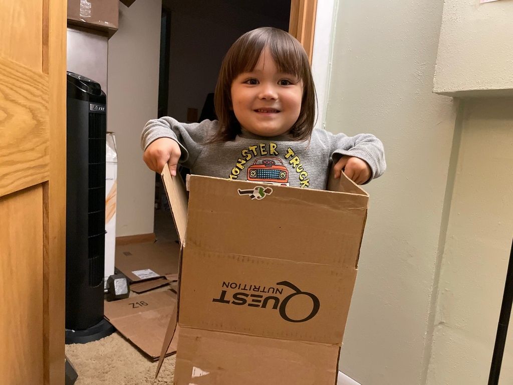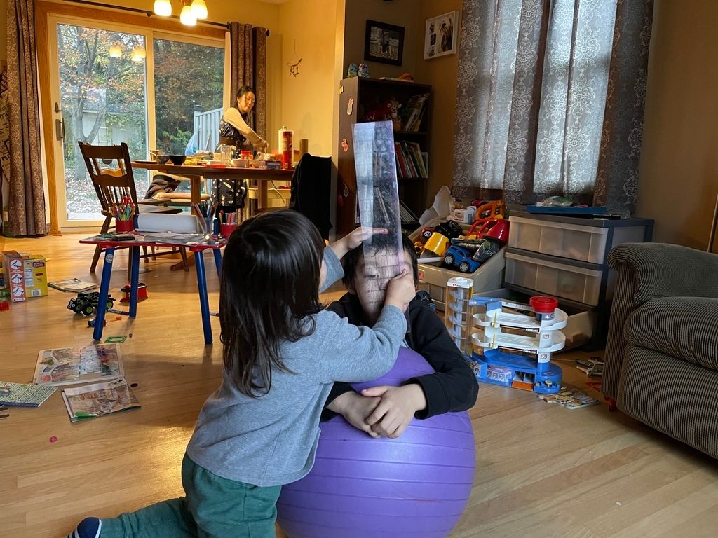 Measuring his brother's head.