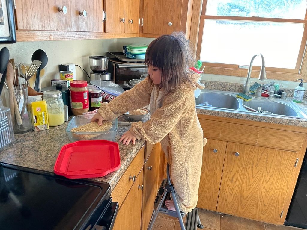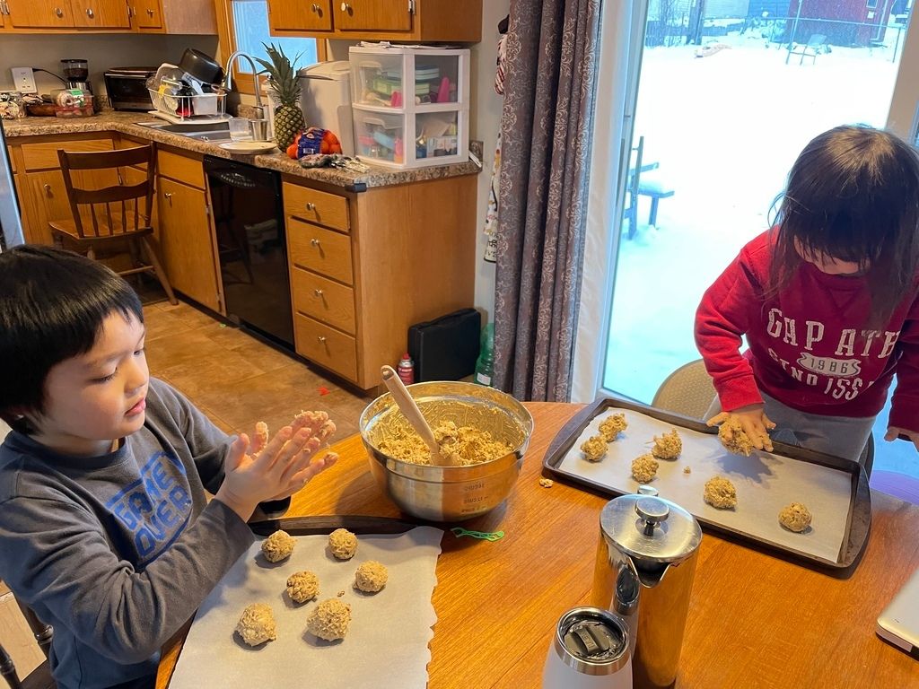 Baking cookies for Santa. Somebody ate all the chocolate chips, so these are "what we had in the pantry" cookies.