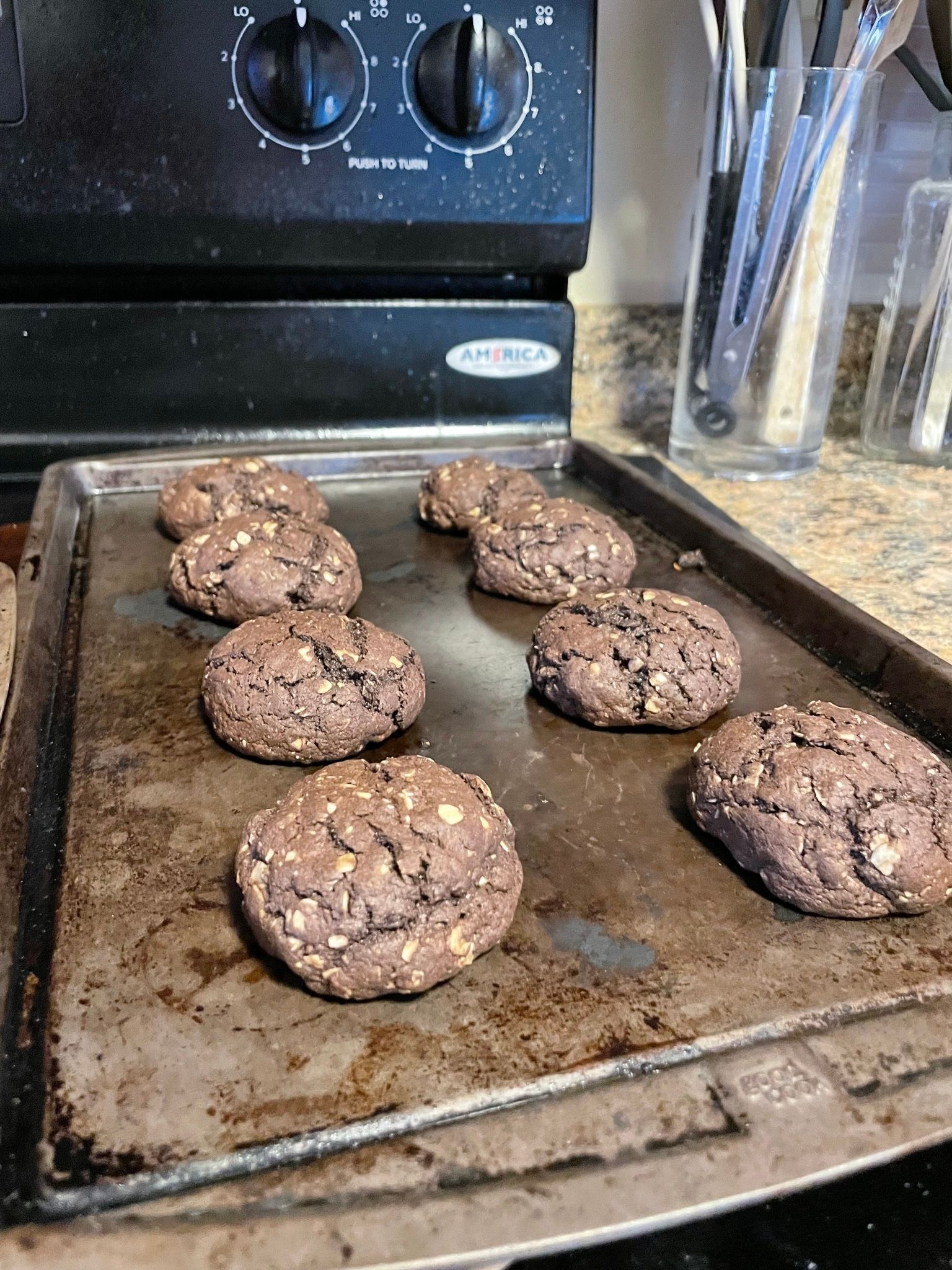 The kids wanted to make cookies, but were we out of anything to put in them. I found a recipe for “boxed cake cookies” and we had a box so why not?I’d give them 2 out of 5 stars.
